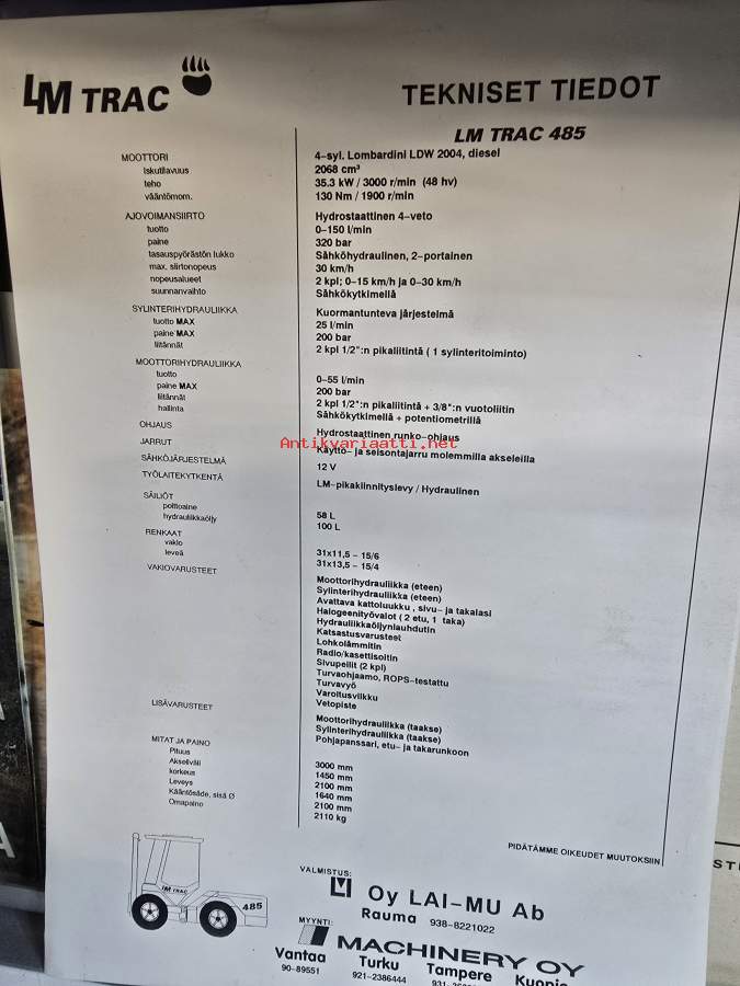 LM Trac 485 Super -käyttöohjekirja / operator´s manual in finnish