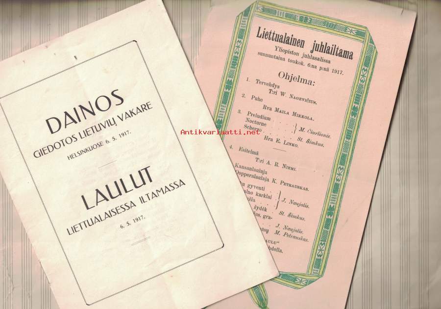 Liettualainen juhlailtama 1917 ohjelmakortti + Laulut liettualaisessa iltamassa.