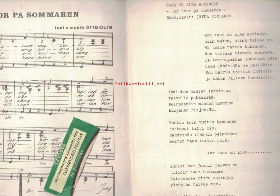 Suomenkieliset sanat eri paperilla.- Postitus 3,80€