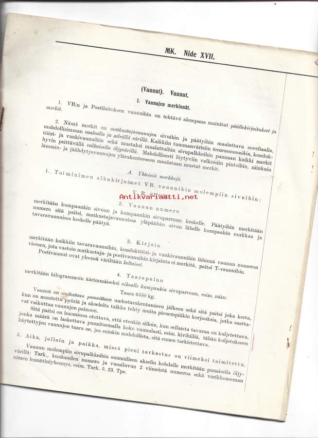 Vaunut merkinnät ja tarkastukset yms- Valtionrautatiet 24 sivua 1920-luku