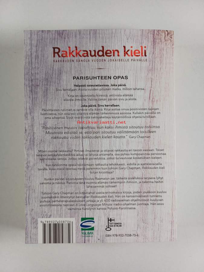 Muu(t) tekijä(t): Päivi HautalaAlkuteos: The one year love language minute devotionalAsiasanat: parisuhde, avioliitto, rakkaus, kärlek, äktenskap, Päivänsanat, parförhållande