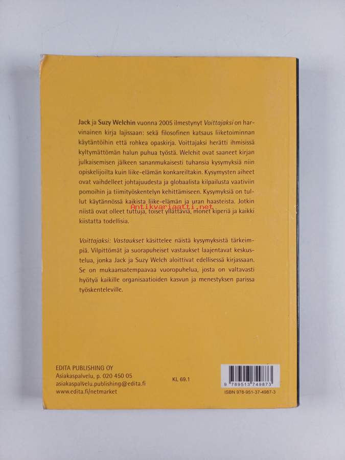 Muu(t) tekijä(t): Maarit Tillman, Suzy WelchAlkuteos: Winning : the answers : confronting 74 of the toughest questions in business todayAsiasanat: menestyminen, yritykset, johtaminen, johtajat, johtajuus, yrittäjyys, yritysstrategiat, urakehitys, henkilöstöjohtaminen, organisaatiot, perheyritykset, muutosjohtaminen, kilpailu (toiminta)