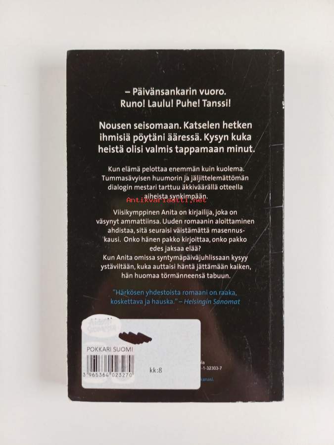 Hyvä. Tarkempi kuntoluokka: K3- ; Hieman kulumaa kansissa, pienoista rispaantumaa reunoilla ja kulmissa, pienoista taitejälkeä etukannessa, takana vanha hintalappu