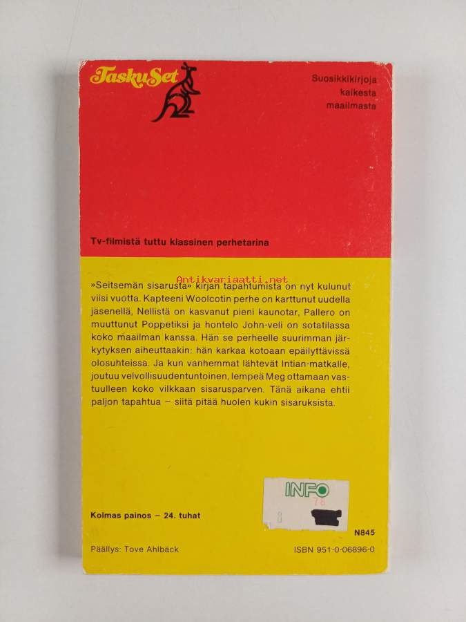 Hyvä. Tarkempi kuntoluokka: K3+ ; Hieman kulumaa kansissa, takana vanha hintalappu