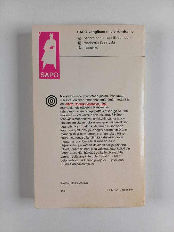 Muu(t) tekijä(t): Anna-Liisa LaineMerkinnät: omistajamerkintäSarja: Sapo 179Alkuteos: Dead man's follyAsiasanat: hercule poirot