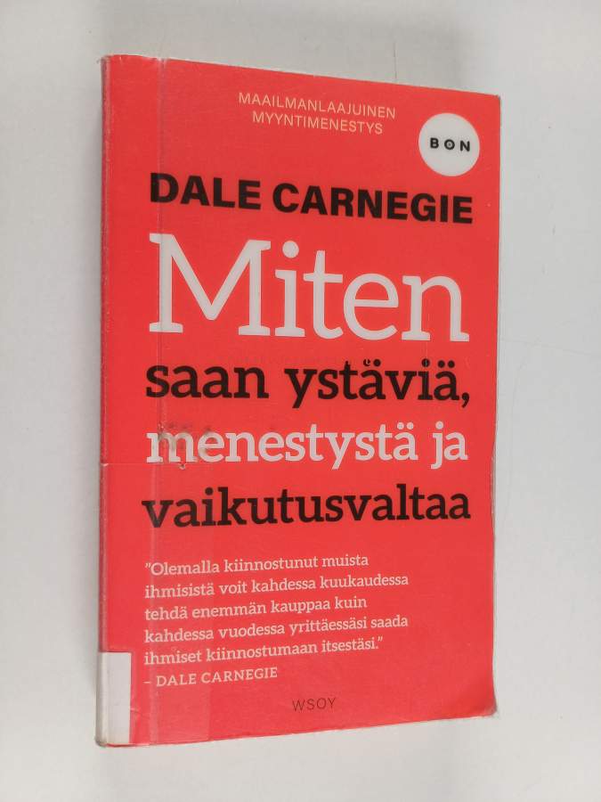 Muu(t) tekijä(t): Risto Mäenpää, Dorothy Carnegie ym.Sarja: BonAlkuteos: How to win friends and influence peopleAsiasanat: psykologia, menestyminen, johtaminen, ihmissuhteet, työyhteisöt, positiivisuus, vaikuttaminen, sosiaaliset taidot, sosiaaliset suhteet, verkostoituminen, kannustus, manipulaatio, suhdetoiminta, suostuttelu