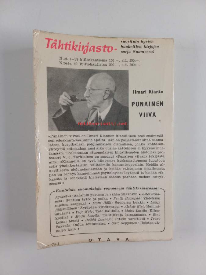 Hyvä. Tarkempi kuntoluokka: K3- ; Hieman repeämää reunoilla ja kulmissa, hieman kulumaa, selkämyksessä hieman vinoutta