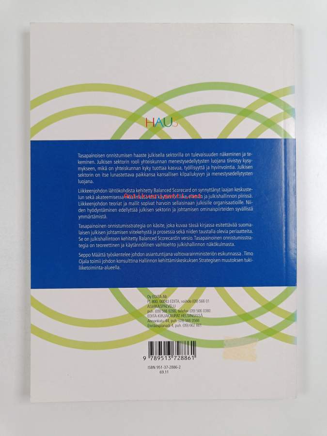 Tasapainoisen onnistumisen haaste : johtaminen julkisella sektorilla ja balanced scorecard