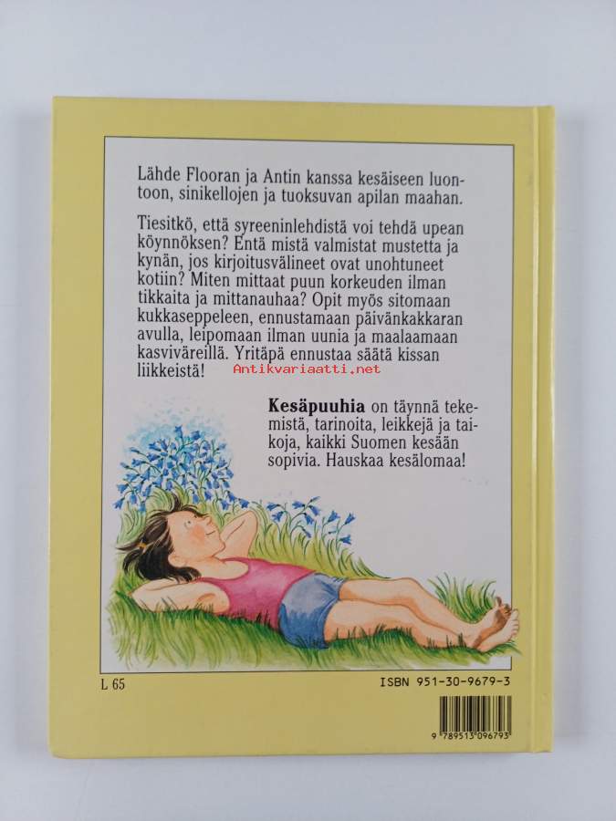 Muu(t) tekijä(t): Ulla Ropponen, Gunilla KvarnströmAlkuteos: SommarlovsbokenAsiasanat: askartelu, luonto, kasvit, leikit, sää, uskomukset, vapaa-ajantoiminnat, harrastukset, luonnontutkimus, säänennustus, taiat, kesä, maalaus (kuvataide), kukat (kasvit)