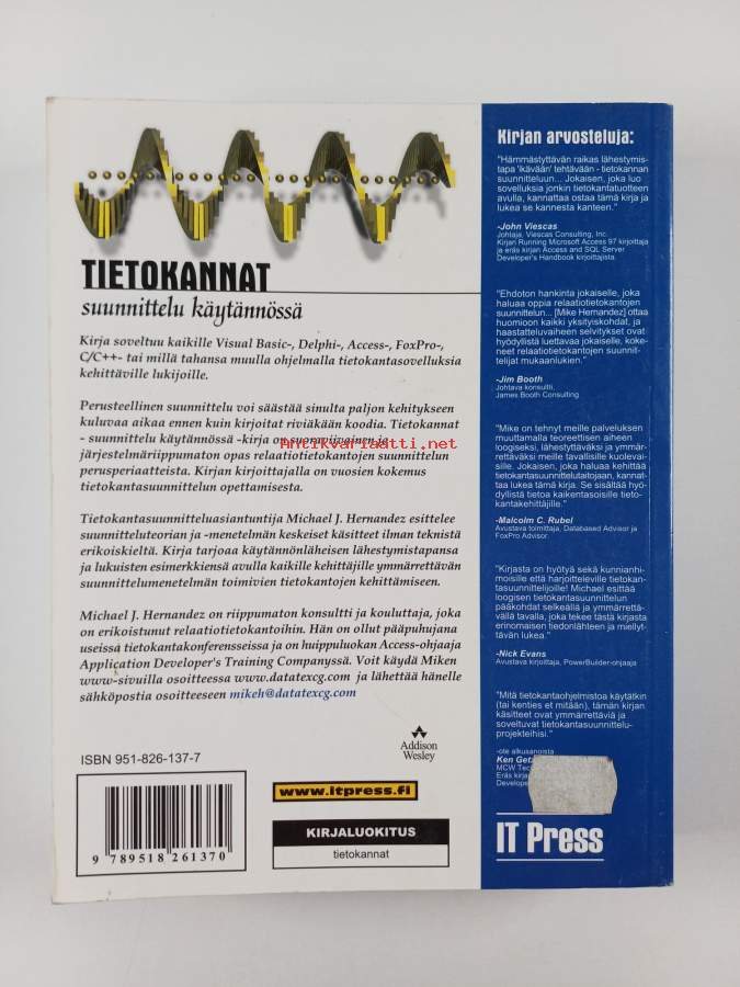 Muu(t) tekijä(t): Tomi KajalaAlkuteos: Database design for mere mortalsAsiasanat: terminologia, suunnittelu, tietokannat, relaatiotietokannat, toteutus
