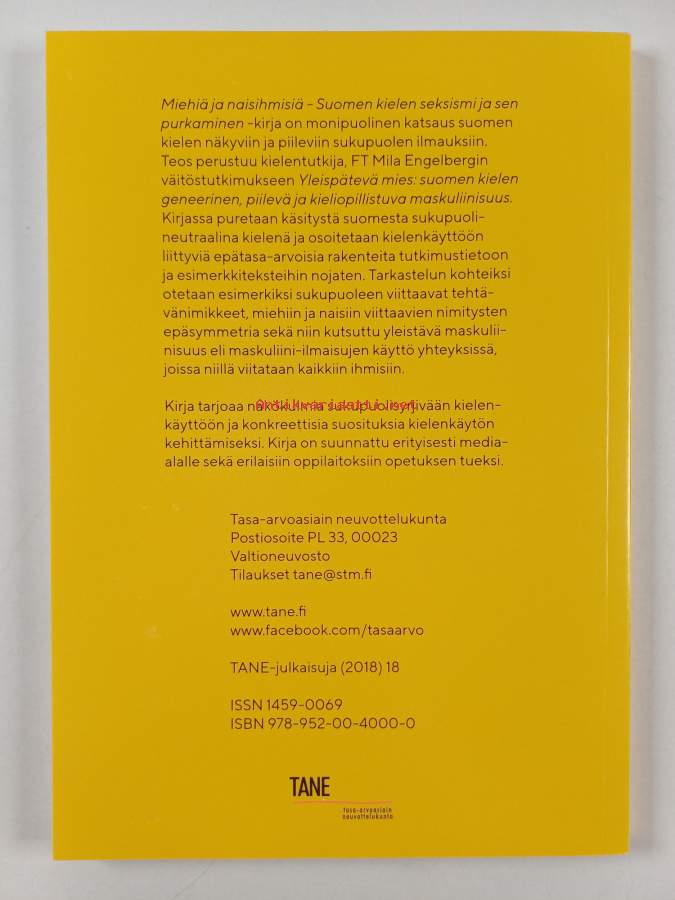 Sarja: TANE-julkaisuja (2018)18Asiasanat: suomen kieli, naiset, tasa-arvo, kielenkäyttö, sukupuoli, syrjintä, puhekieli, sukupuolittuminen, sukupuolisensitiivisyys, seksismi, sukupuolittuneisuus