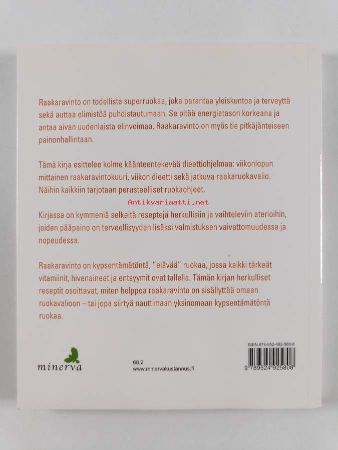 Muu(t) tekijä(t): Anna Maija LuomiAlkuteos: The Raw Food Diet - The Healthy Way to Get the Shape You WantAsiasanat: ruokaohjeet, ruoanvalmistus, terveysvaikutukset, keittokirjat, ruokavaliot, kasvisravinto, kasvisruoat, painonhallinta, raakaravinto