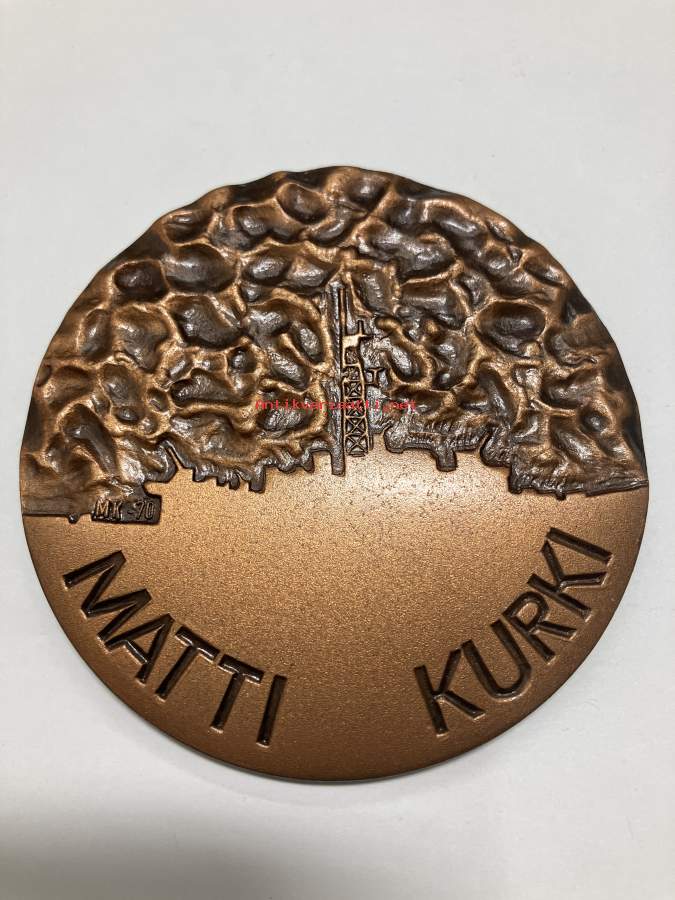 Halkaisija 7 cm, mitalin on suunnitellut (Harri?) Kosonen 1970.HMS Porlock Bay - Matti KurkiLaivastohistoriaa - kohtalaisen harvinainen mitali.Tämä mitali kuulunut henkilökohtaisesti Komentaja Matts Frans Ernesto Wikberg´ille, hän oli laivan kapteeni.Matts Frans Ernesto Wikberg (1909 Kotka – 1979 Turku) oli suomalainen merivoimien upseeri, sotilasarvoltaan komentaja.Tultuaan ylioppilaaksi 1928 Wikberg haki varusmiespalveluksen jälkeen Merisotakouluun. Hän osallistui kadettina Suomen Joutsenen 1. valtameripurjehdukseen ja nuorena upseerina, vahtipäällikön apulaisena, Suomen Joutsenen 7. valtameripurjehdukseen. Sodassa hän mm. toimi tykkivene Uusimaan päällikkönä johtaen laivasto-osastoa Somerin taistelussa ja osallistuen Bengtskärin taisteluun.Sodan jälkeen Matts Wikberg toimi eri tehtävissä Helsingin ja Turun laivastoasemilla, mm. Laivaston koulun johtajana Pansiossa.Suomen ostettua Englannista Porlock Bay –nimisen fregatin merivoimien koululaivaksi, Matts Wikberg määrättiin Matti Kurjeksi uudelleen kastetun laivan ensimmäiseksi päälliköksi. Hän haki laivan Englannista 1962 ja toimi sen päällikkönä vuoteen 1964. Näiden vuosien aikana hän ihaili laivan merikelpoisuutta sekä hallittavuutta. Fregatti Matti Kurki teki hänen johdollaan lukuisia laivastovierailuja sisältäneitä purjehduksia, joista pisin Välimeren läpi Mustalle merelle Sevastopoliin. Eläkkeelle Matts Wikberg siirtyi vuonna 1964.