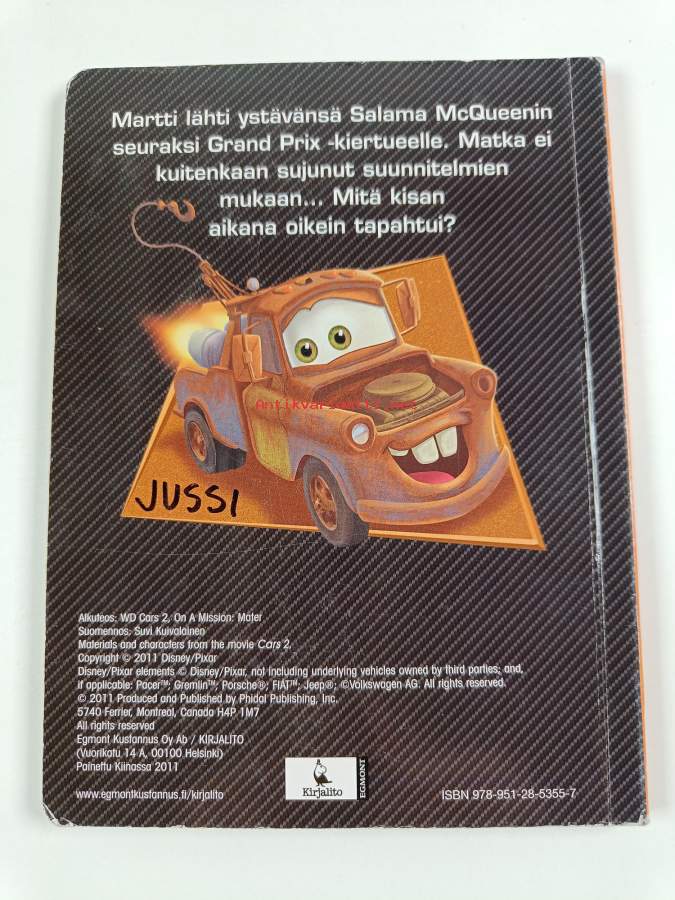 Muu(t) tekijä(t): Suvi KuivalainenMerkinnät: omistajamerkintäSarja: Autot 2Alkuteos: WD Cars 2, On A Mission : MaterAsiasanat: lastenkirjallisuus, autot, kuvakirjat, paksulehtiset kirjat