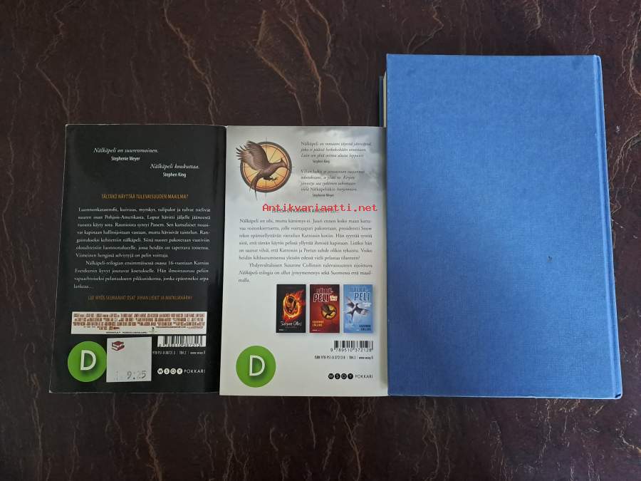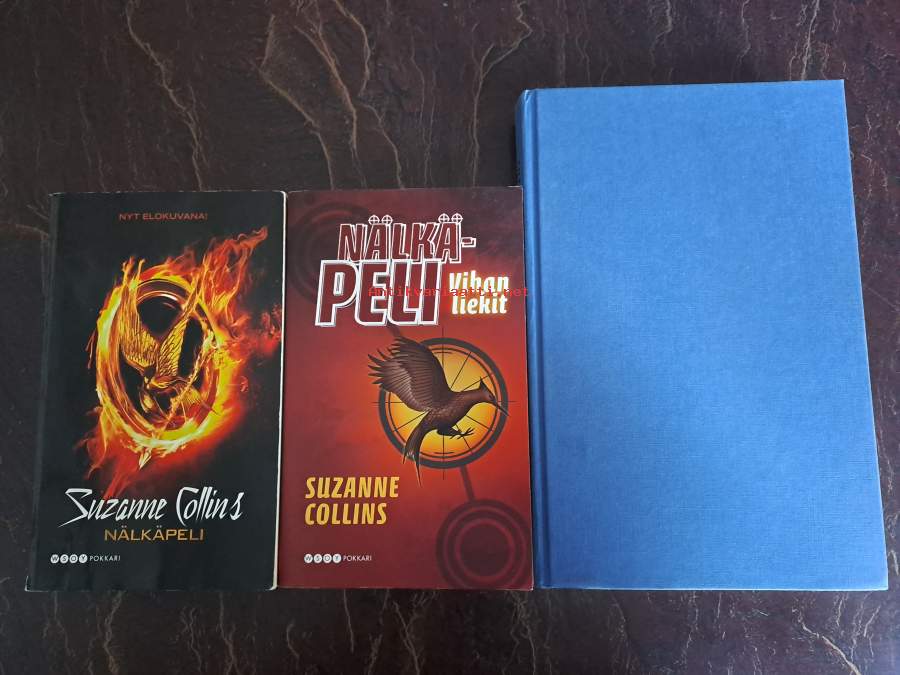 Hyvä. Pokkariversiot osista 1-2: Nälkäpeli & Vihan liekit. 3. osa on kovakantisena ilman kansipapereita. Pokkarien kansissa on pientä kulumaa ja ensimmäisen osan takakannessa on vanha hintalappu.