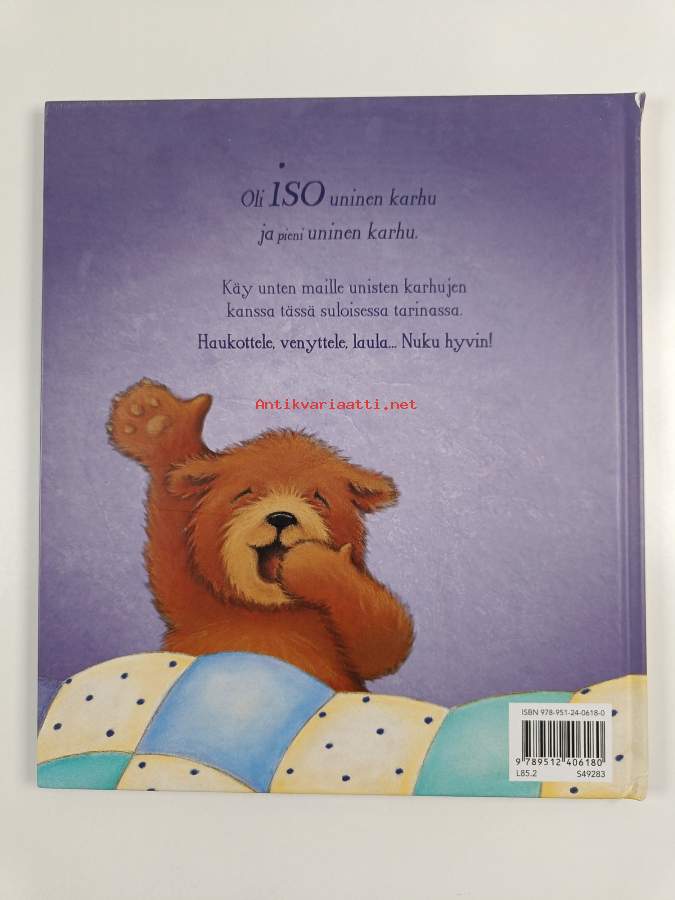 Muu(t) tekijä(t): Päivi Rekiaro, Julie ClayAlkuteos: Sleep Tight, Sleepy BearsAsiasanat: karhut, nukkumaanmeno