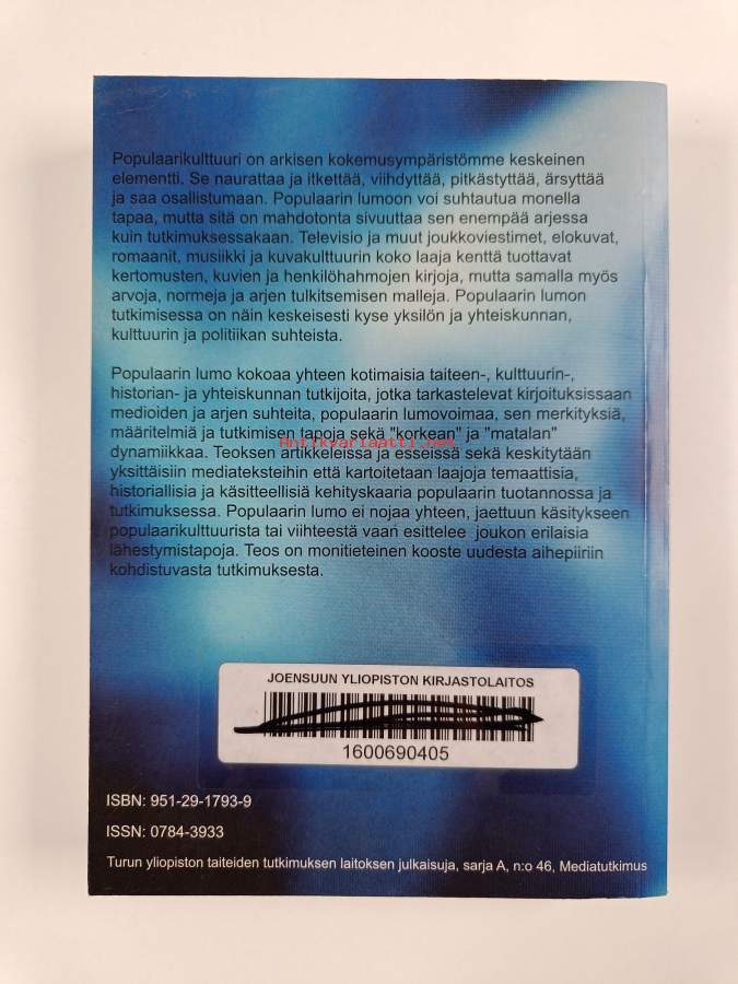 Muu(t) tekijä(t): Anu Koivunen, Susanna Paasonen ym.Merkinnät: omistajamerkintä (leima)Sarja: Turun yliopisto. Taiteiden tutkimuksen laitos. Sarja A n:o 46Asiasanat: urheilu, huumori, Internet, tutkimus, televisio-ohjelmat, kirjallisuus, tietoverkot, populaarikulttuuri, viihde, kulttuurintutkimus, nostalgia, tanssi, virtuaalitodellisuus, elokuvataide, televisio (joukkoviestimet)