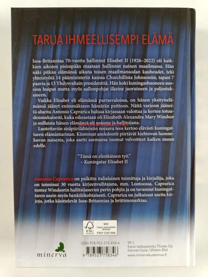 Muu(t) tekijä(t): Anna Maija LuomiAlkuteos: Intramontabile ElisabettaAsiasanat: historia, kuninkaalliset, kuningashuoneet, hallitsijat, kuningattaret