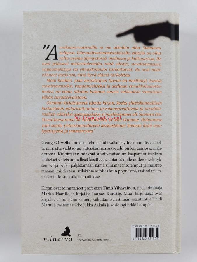 Muu(t) tekijä(t): Timo Vihavainen, Joonas Konstig ym.Asiasanat: ideologiat, asenteet, arvot, yhteiskuntakritiikki, maailmankatsomus, julkinen keskustelu, suvaitsevaisuus, suvaitsemattomuus, aatteellisuus, konservatismi, vapaamielisyys, kulttuurikritiikki, arvokeskustelu, julkinen keskusteu