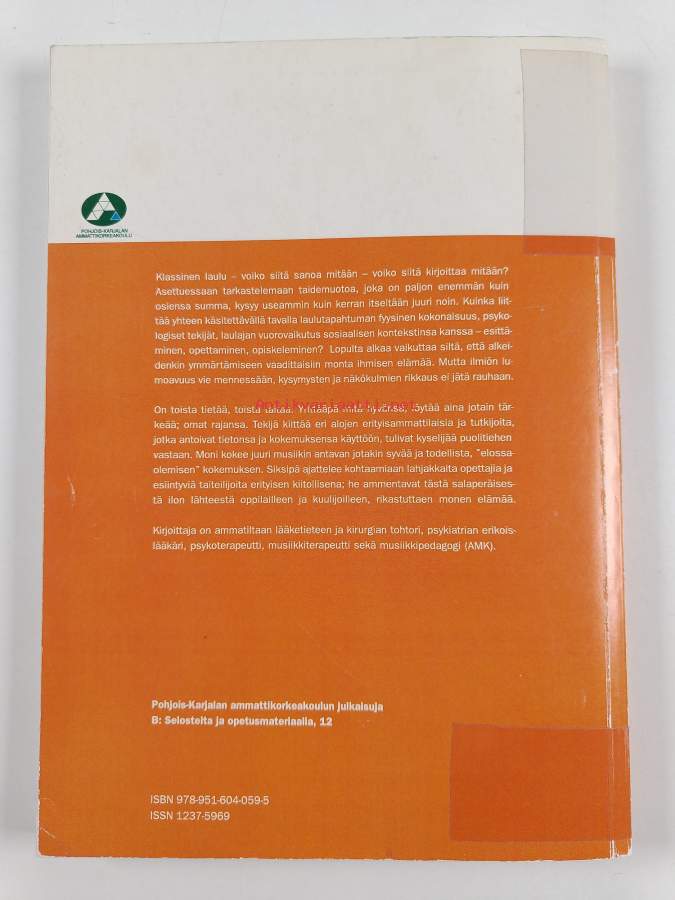 Sarja: Pohjois-Karjalan ammattikorkeakoulun julkaisuja. B, Selosteita ja opetusmateriaalia 12Asiasanat: laulajat, narsismi, fyysinen kunto, laulaminen, äänihäiriöt, äänenmuodostus, äänifysiologia, esiintymisjännitys