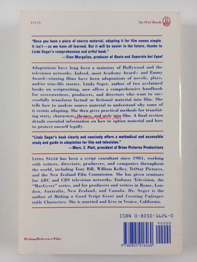 Asiasanat: kirjallisuus, kaunokirjallisuus, näytteleminen, elokuvat, tekniikka, käsikirjoitukset, elokuva-ala, filmatisointi, käsikirjoittaminen, elokuvaus, sovitukset, tuotanto, menetelmät, käsikirjoittajat, elokuvailmaisu, elokuvataide, tekniikat, tuottaminen, Motion pictures and literature, Film adaptations, Motion picture authorship, Motion picture plays