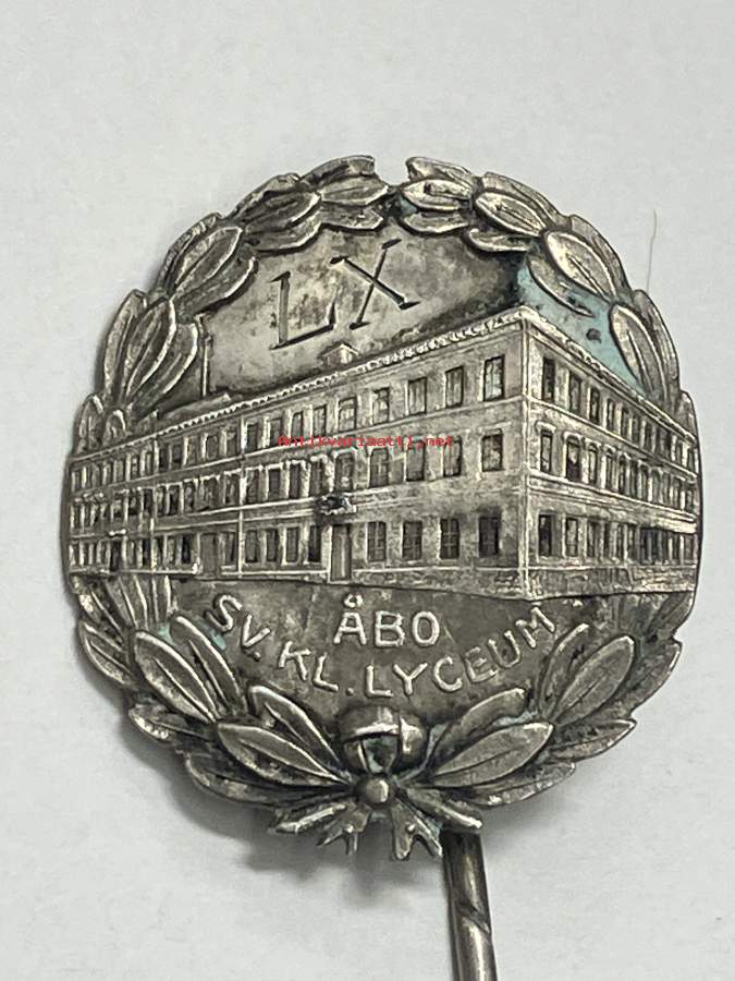 Åbo klassicka lyceum LX -neulamerkki, 813 hopeaa -koulun 70-vuotismerkki