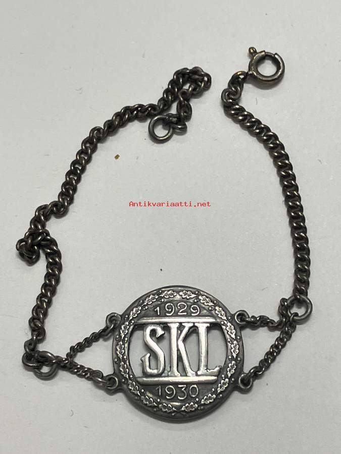Svenska klassiska lyceum (i Åbo) 1929-1930 - 1.5.1940 Slottet -ranneke, 813 hopeaa -koulun jonkin luokan ranneke, jossa kaiverrettuna luokkakouksen aika ja paikka.