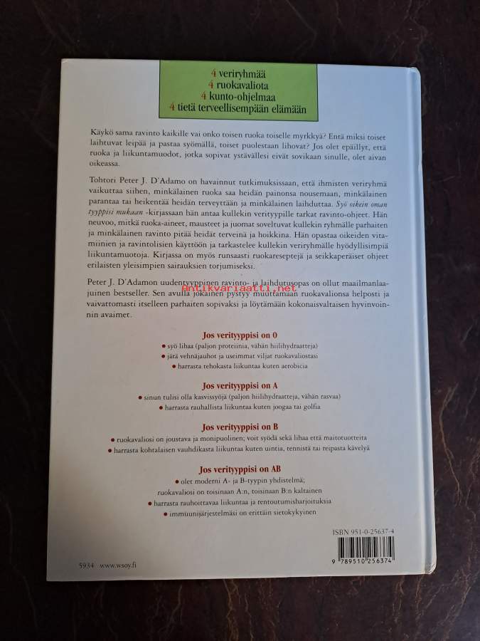 Syö oikein oman tyyppisi mukaan : henkilökohtainen ruokavalio, jonka avulla pysyt terveenä, elät pitempään ja saavutat ihannepainosi