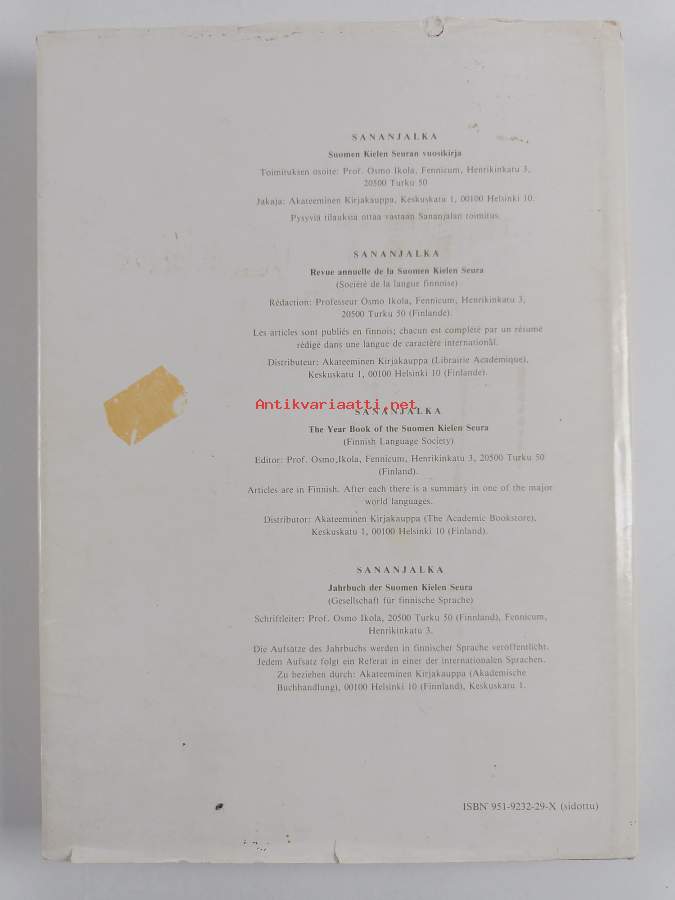 Sananjalka Suomen kielen seuran vuosikirja 1-40 Puuttuu numerot 2 ja 30