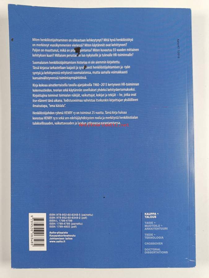 Muu(t) tekijä(t): Juhani Kauhanen, Seppo Mansukoski ym.Sarja: Aalto-yliopiston julkaisusarja. Kauppa + talous 7/2015Asiasanat: historia, johtaminen, työelämä, muutos, esimiehet, henkilöstöjohtaminen, henkilöstöhallinto, organisaatiot, kehitys, johtamisjärjestelmät, organisaatiomuutokset, esihenkilöt