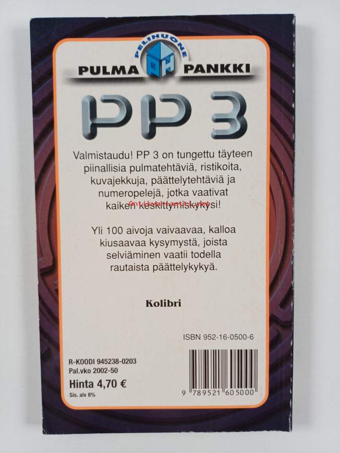 Muu(t) tekijä(t): Inkeri KoskinenAlkuteos: Puzzle zoneAsiasanat: visailukysymykset, ongelmanratkaisu, sanaristikot, ajattelu, päättely, tehtävät, ristisanatehtävät