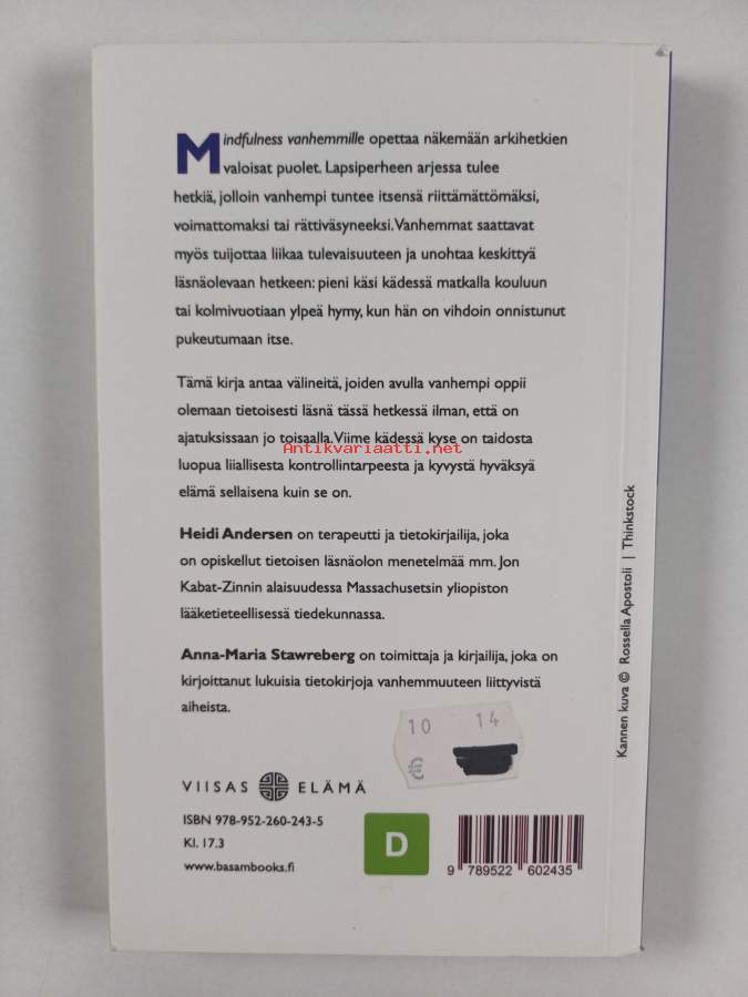 Muu(t) tekijä(t): Riikka Toivanen, Anna-Maria StawrebergAlkuteos: Mindfulness för föräldrarAsiasanat: vanhempi-lapsisuhde, vanhemmuus, vuorovaikutus, vanhemmat, kotikasvatus, kasvatus, tietoisuus, kasvatusoppaat, tietoinen läsnäolo, läsnäolo, lapset (ikäryhmät)