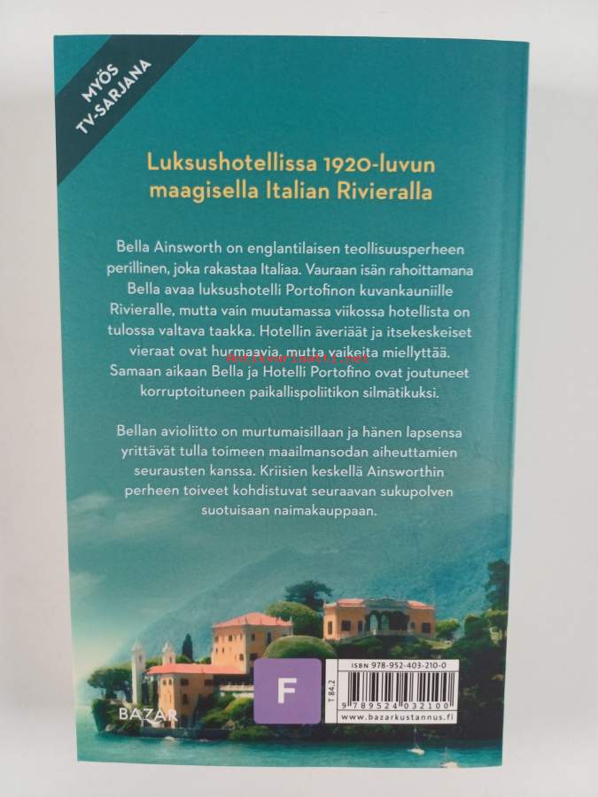 Alkuteos: Hotel PortofinoAsiasanat: hotellit, Italia, rakkaus, perheet, ensimmäinen maailmansota, britit, sodanjälkeinen aika, perhesuhteet, Riviera, yläluokka, ajankuvaus, hotellinjohtajat, 1920-luku