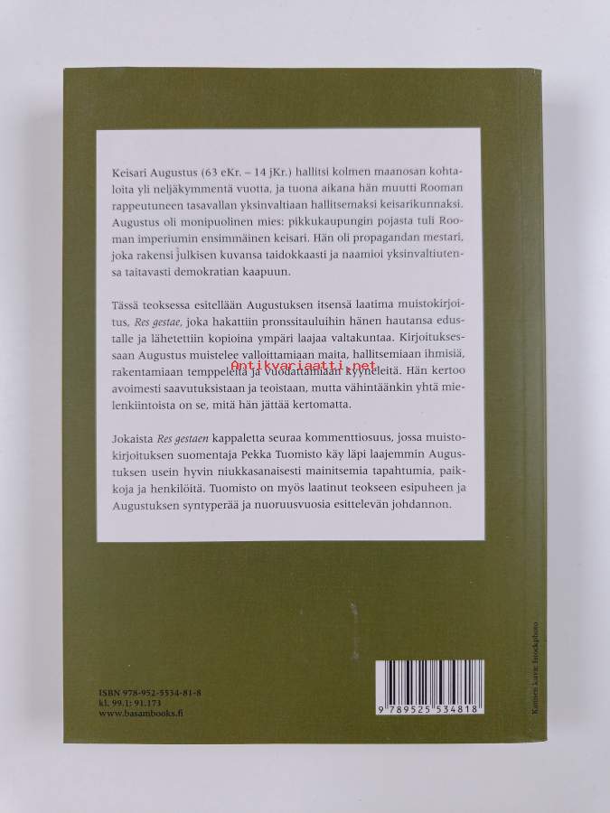Muu(t) tekijä(t): Pekka (suom.) TuomistoAlkuteos: Res gestae divi AugustiAsiasanat: antiikki, keisarit, historiankirjoitus, piirtokirjoitukset