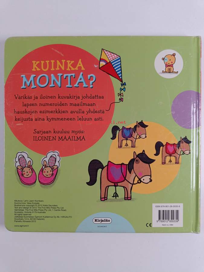 Muu(t) tekijä(t): Vesa KorpelaAlkuteos: Let's learn numbersAsiasanat: lastenkirjallisuus, numerot, laskeminen, kuvakirjat, paksulehtiset kirjat