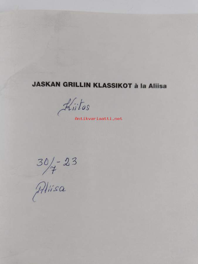 Jaskan Grillin klassikot à la Aliisa (signeerattu, tekijän omiste)