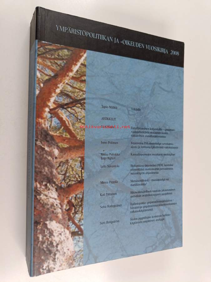 Muu(t) tekijä(t): Tapio MäättäAsiasanat: ympäristöpolitiikka, ympäristönsuojelu, vuosikirjat, ympäristöfilosofia, ympäristö, ympäristöoikeus, kansainvälinen ympäristöoikeus, ympäristötalous, ympäristövastuu, ympäristöohjelmat, ecology, oikeus (oikeudenala), miljöfilosofi, miljö, Law, årsböcker, miljöskydd, environmental policy, environmental protection, Environmental economics, miljöpolitik, miljörätt, internationell miljörätt, rätt (rättsområde), miljöekonomi (ekonomi), miljöprogram, miljöansvar