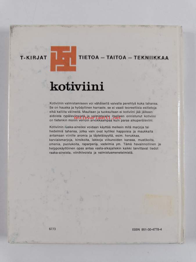 Kotiviini, 1968. 4. painos.Kotiviinin valmistamiseen voi vähäisellä vaivalla perehtyä kuka tahansa.
