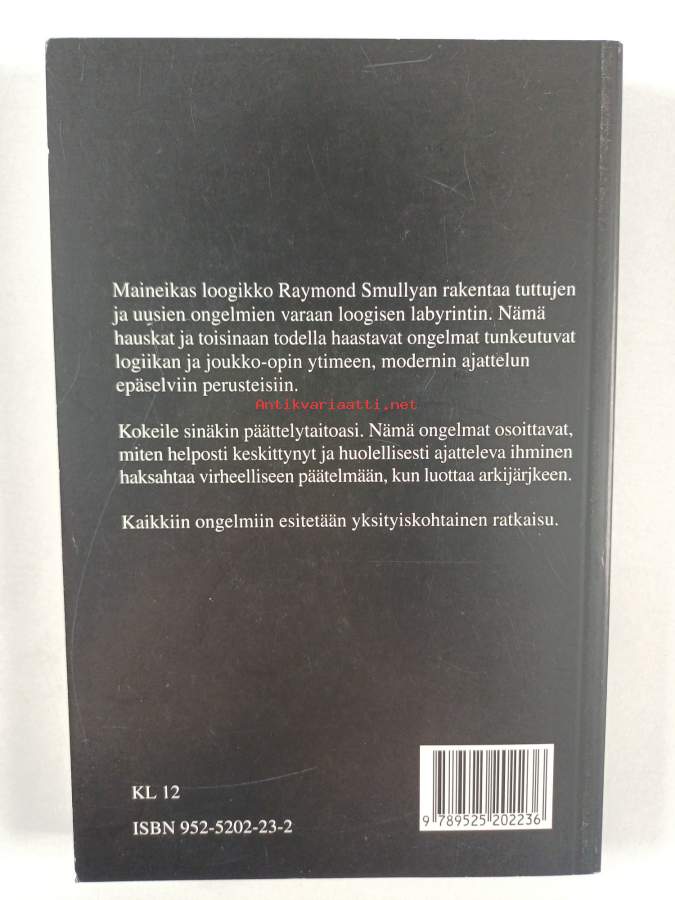 Muu(t) tekijä(t): Hannele SalminenAlkuteos: What is the name of this bookAsiasanat: ongelmanratkaisu, arvoitukset, älykkyyspelit, kompakysymykset