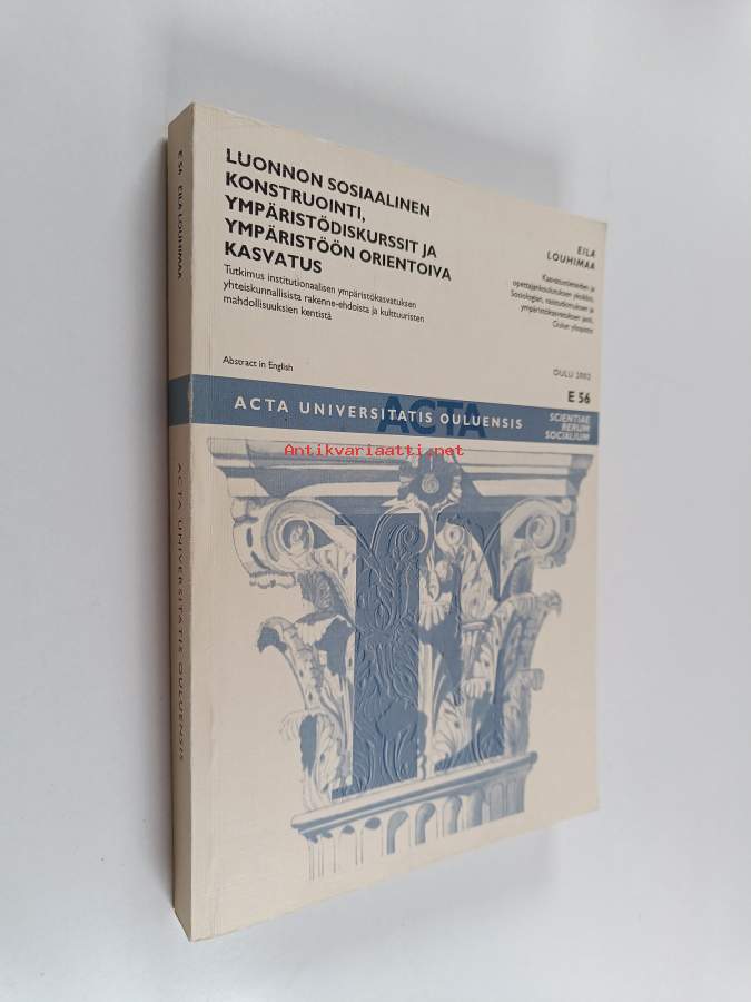 Koko nimi: Luonnon sosiaalinen konstruointi, ympäristödiskurssit ja ympäristöön orientoiva kasvatus - tutkimus institutionaalisen ympäristökasvatuksen yhteiskunnallisista rakenne-ehdoista ja kulttuuristen mahdollisuuksien kentistä