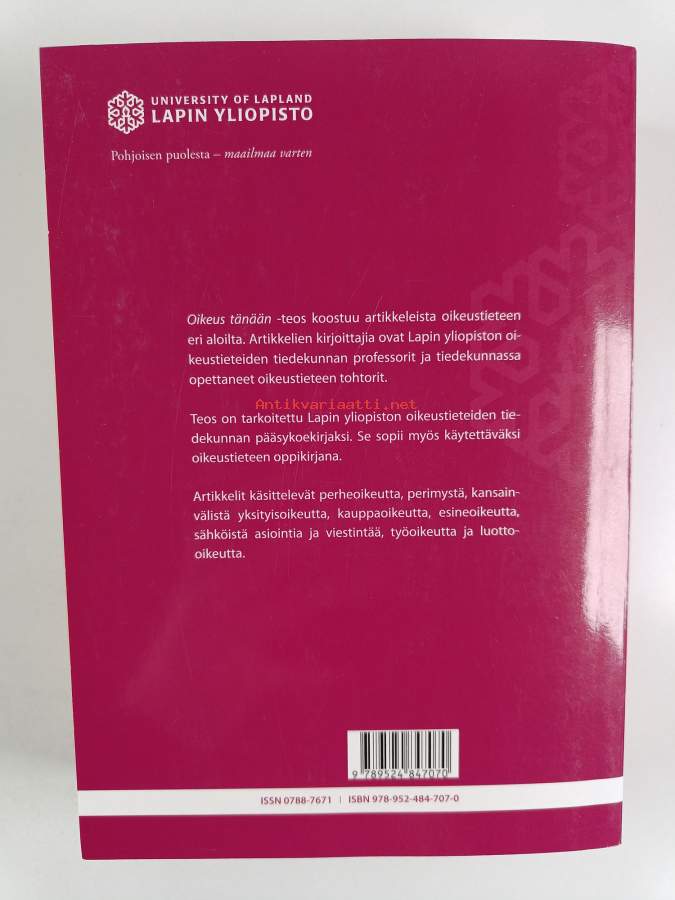 Muu(t) tekijä(t): Seppo Koskinen, Marja-Leena Niemi ym.Asiasanat: perintöoikeus, perheoikeus, työoikeus, vero-oikeus, kauppaoikeus, rikosoikeus, velvoiteoikeus, työsuhdeturva, valtiosääntöoikeus, säädösvalmistelu, kansainvälinen yksityisoikeus