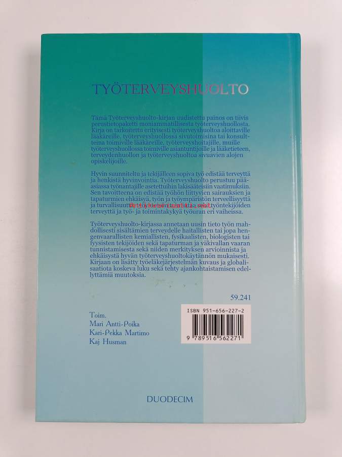 Asiasanat: työympäristö, terveydenhuolto, työolot, työterveyshuolto