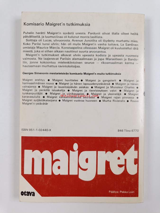 Muu(t) tekijä(t): Sinikka KallioMerkinnät: omistajamerkintäSarja: Komisario Maigret'n tutkimuksiaAlkuteos: Maigret et l'indicateur