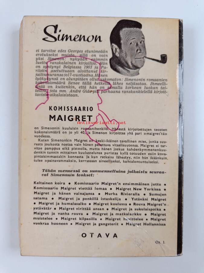 Muu(t) tekijä(t): Osmo MäkeläinenMerkinnät: omistajamerkintäAlkuteos: Maigret, lognon et les gangsters
