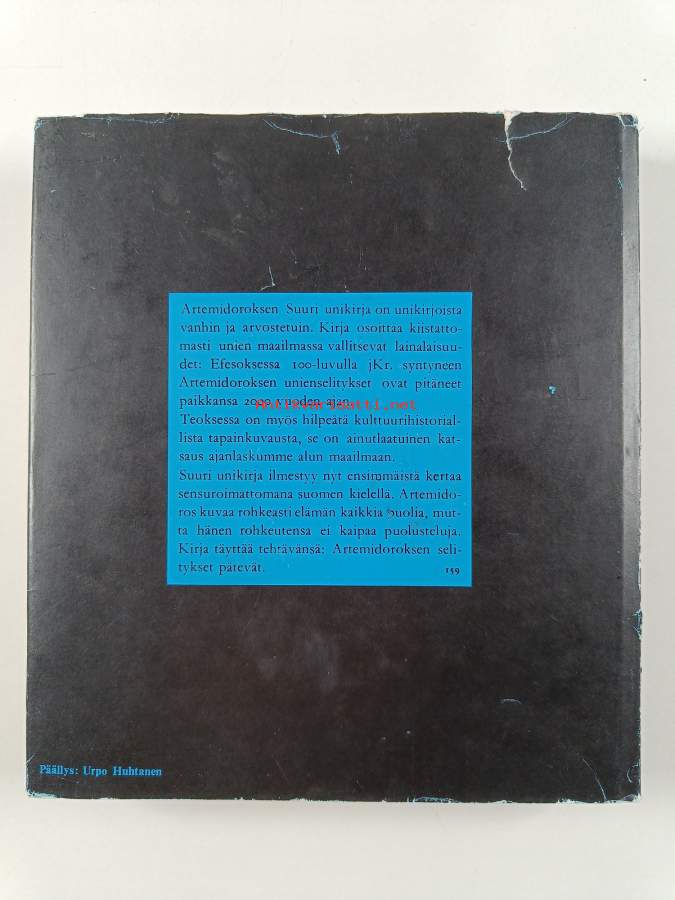 Hyvä. Hieman kulumaa, pienoista rispaantumaa kansissa, edessä vanha hintalappu. Kansipaperin kunto: repeämiä/kulumaa