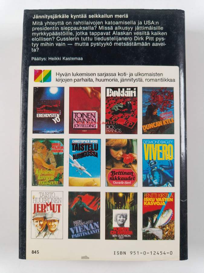 Hyvä. Pienoista tahraisuutta, pienoista kulumaa, selkämyksessä hieman vinoutta. Kansipaperin kunto: jonkin verran kulumaa/pienoisia repeämiä