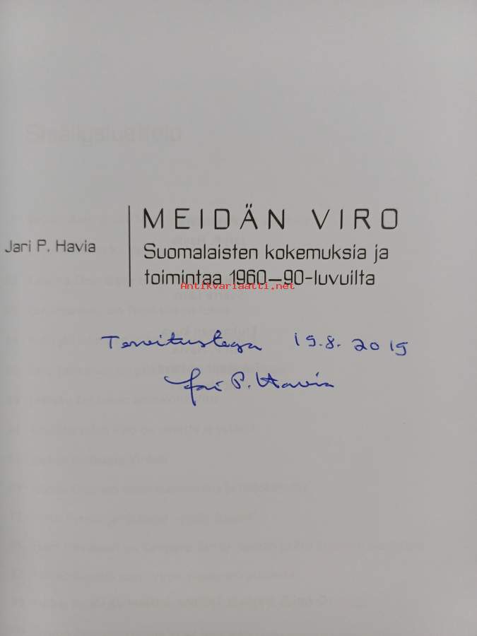 Hyvä. Tarkempi kuntoluokka: K3- ; Pienoista tahraisuutta kansissa, hieman kolhua kansissa, pienoista kulumaa kansissa. tekijän signeeraama