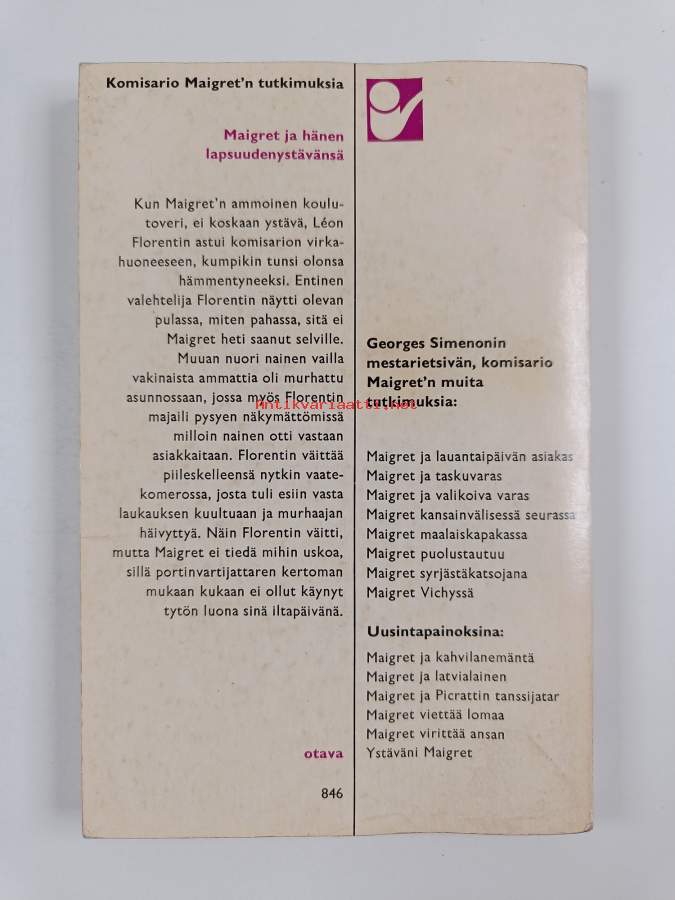 Muu(t) tekijä(t): Sulamit ReenpääMerkinnät: omistajamerkintäSarja: Komisario Maigret'n tutkimuksia