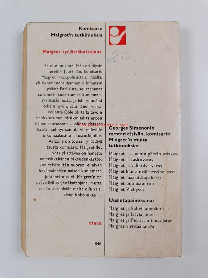 Muu(t) tekijä(t): Irmeli SallamoAlkuteos: Maigret chez le coronerAsiasanat: jännityskirjallisuus, poliisiromaanit