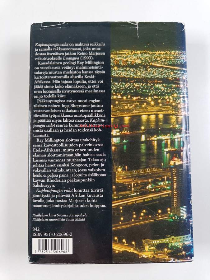 Hyvä. Hieman kolhua kansissa, pienoista kolhua kansissa, selkämyksessä hieman vinoutta. Kansipaperin kunto: joitain repeämiä/kulumaa